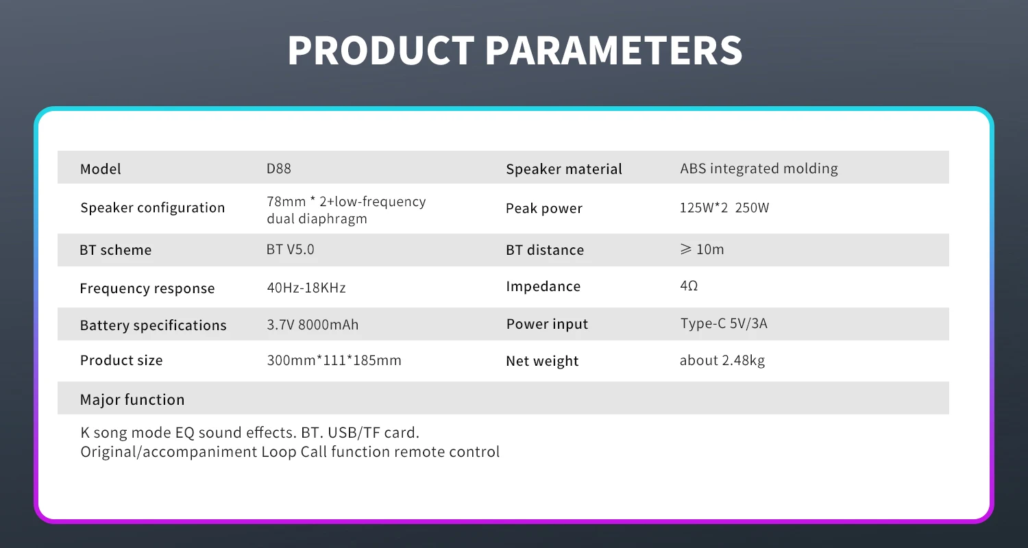 Support | USB. TF card. Microphone. AUX.Bluetooth |