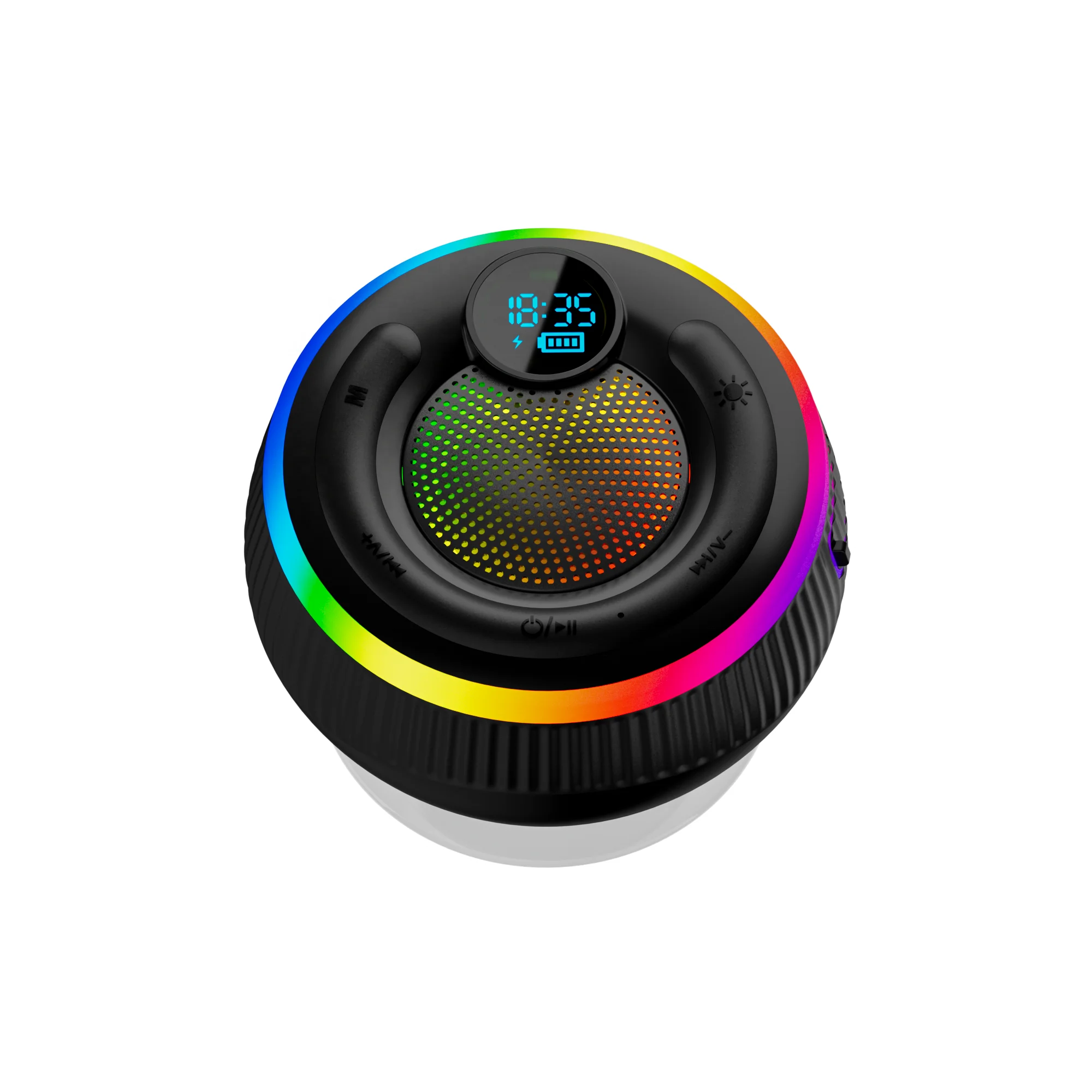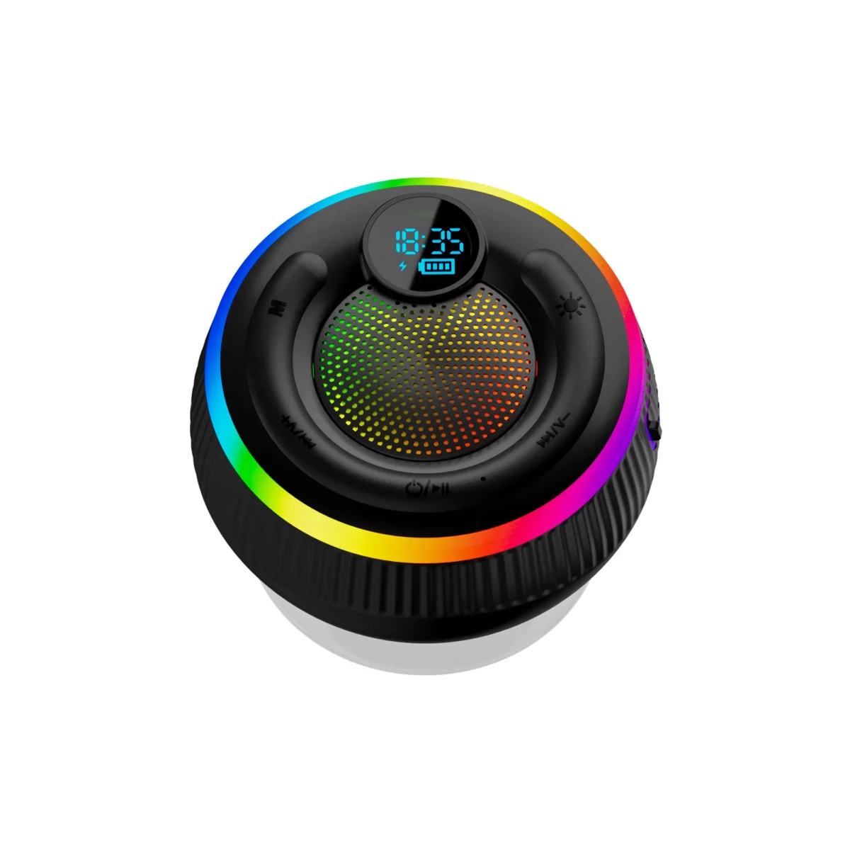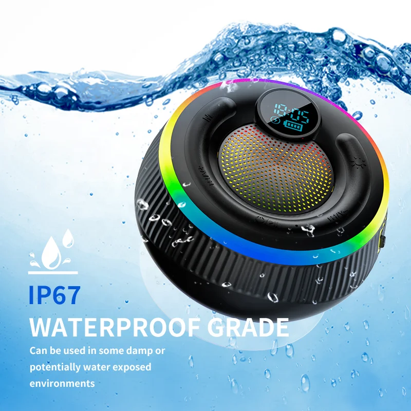 Main Features | Bluetooth.RGB lighting effects.FM function Speaker pairing.digital clock suction cup.English voice prompts |